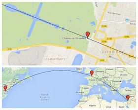 On top of that, the distance between Versailles and the White House is 3333 nautical miles (99,7% accurate), and the distance between Versailles and the Dome of the Rock is 3333 kilometers (99,6%).